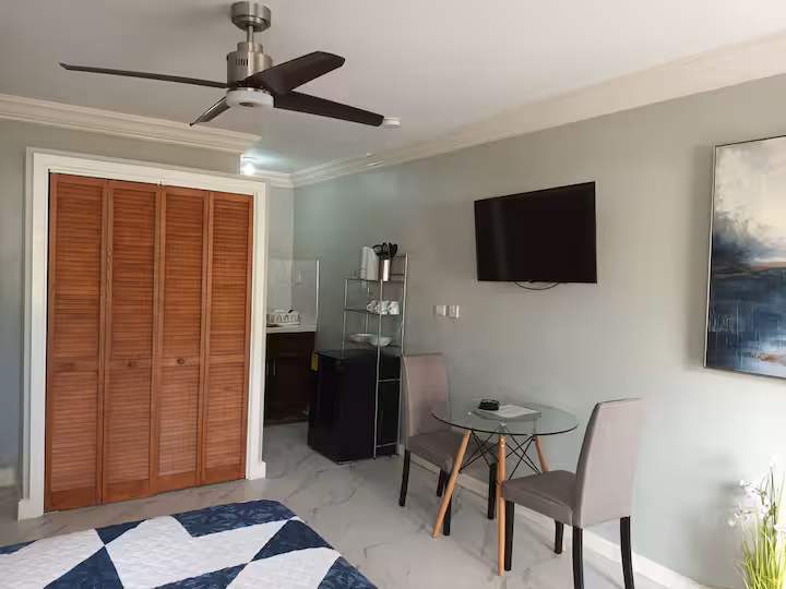 Very close to airport, shopping, restaurants and all the conveniences you want.